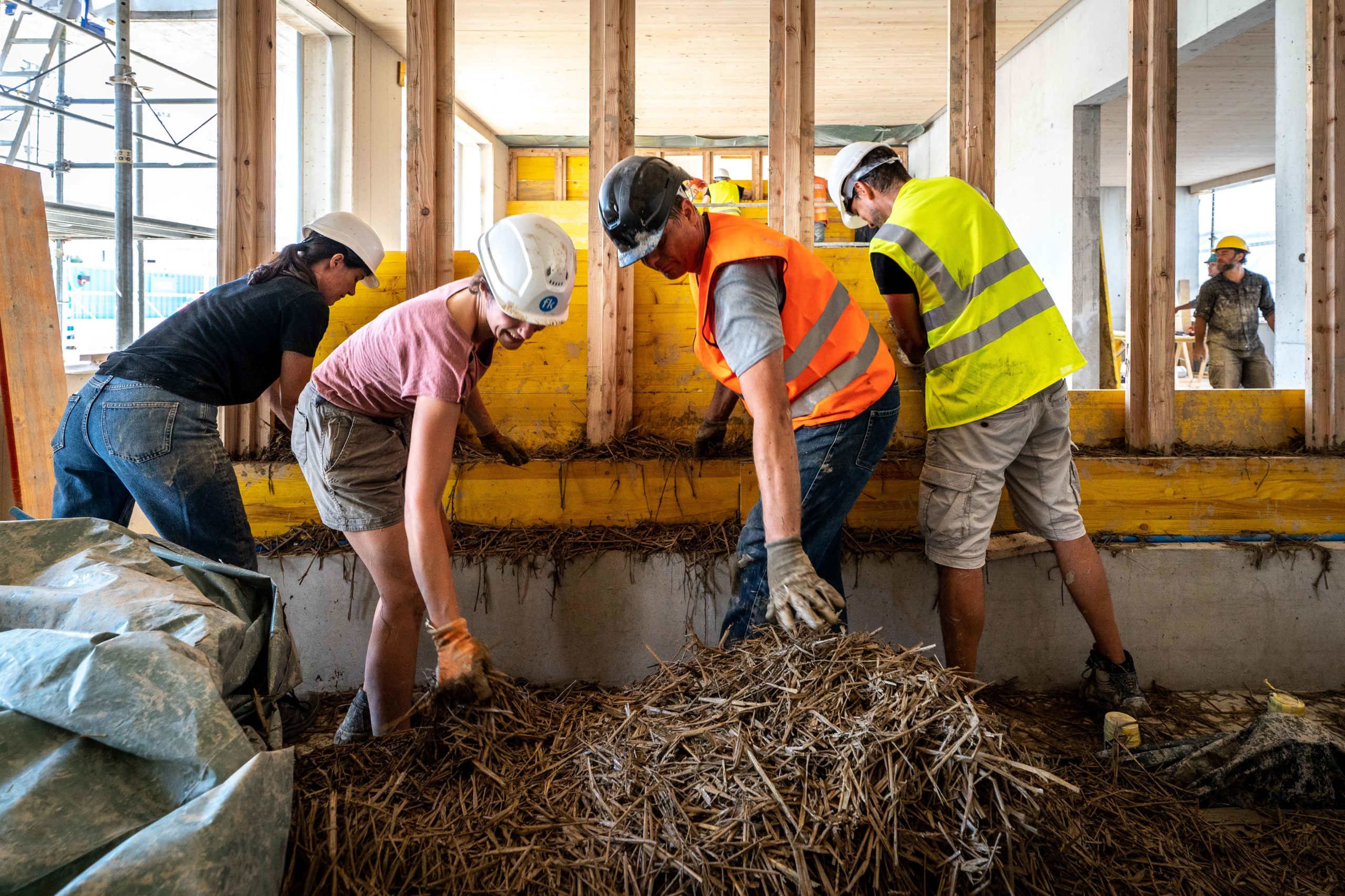 Construction de murs en terre-paille pour la coopérative d’habitants Ecopolis