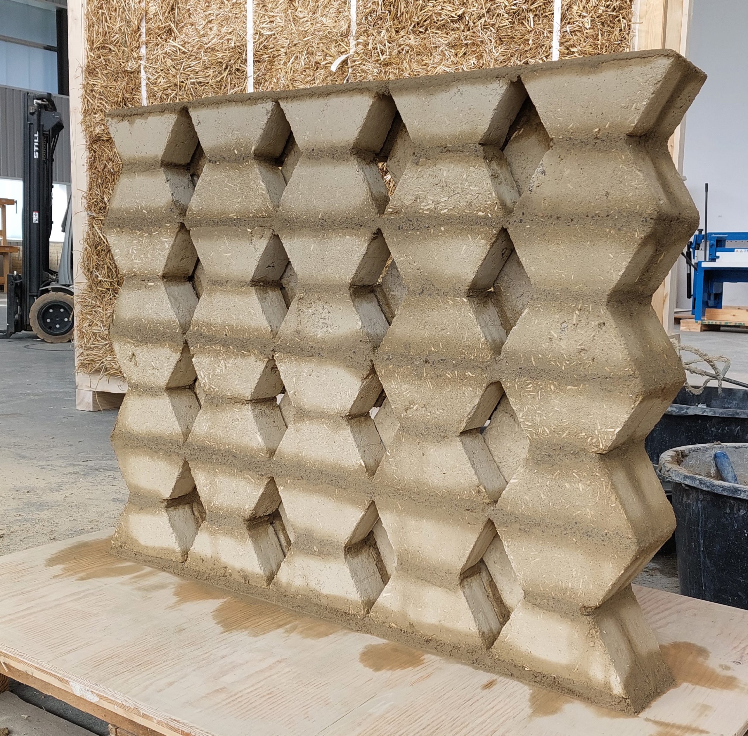Avec les étudiants du JointMaster de Fribourg, Bienne et Genève, etceterra a réalisé un prototype avec des briques d’adobes trapézoïdales, qui sera exposé à l’exposition TERRAFIBRA AWARD .
