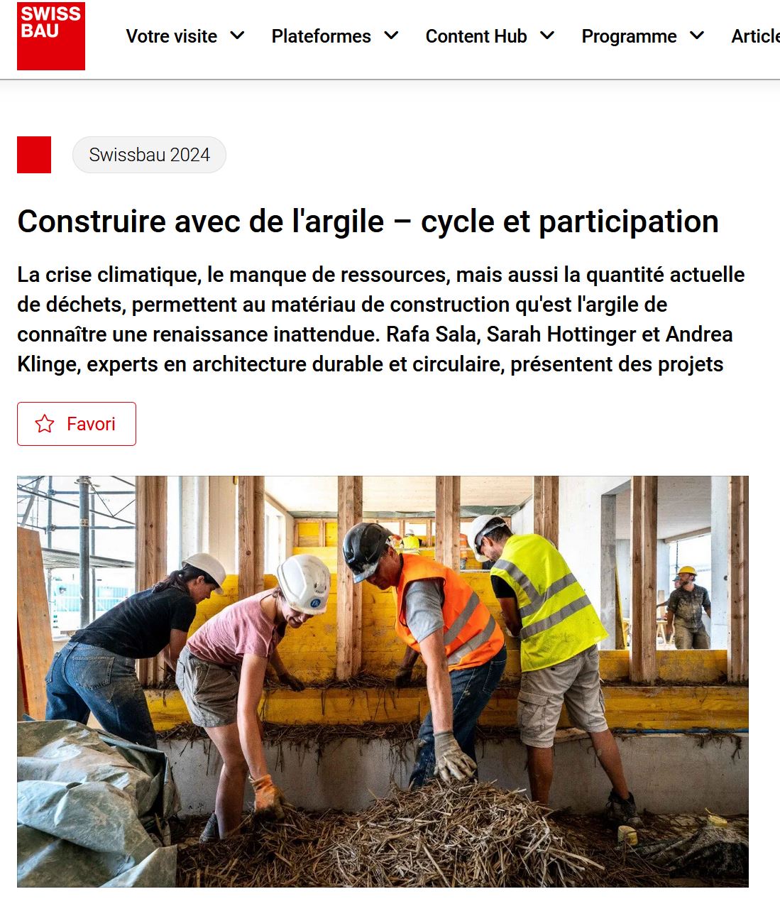 Retour d’expérience sur le chantier participatif des murs en terre-paille de la coopérative Ecolopis à Lausanne. Sarah présentera jeudi 18.01 comment utiliser la terre et l’argile, matériaux de prédilection pour créer du lien et réaliser une architecture post carbone. Table ronde organisée par IG-LEHM avec Rafa Sala, Andrea Klinge, modération Patrick Krecl.