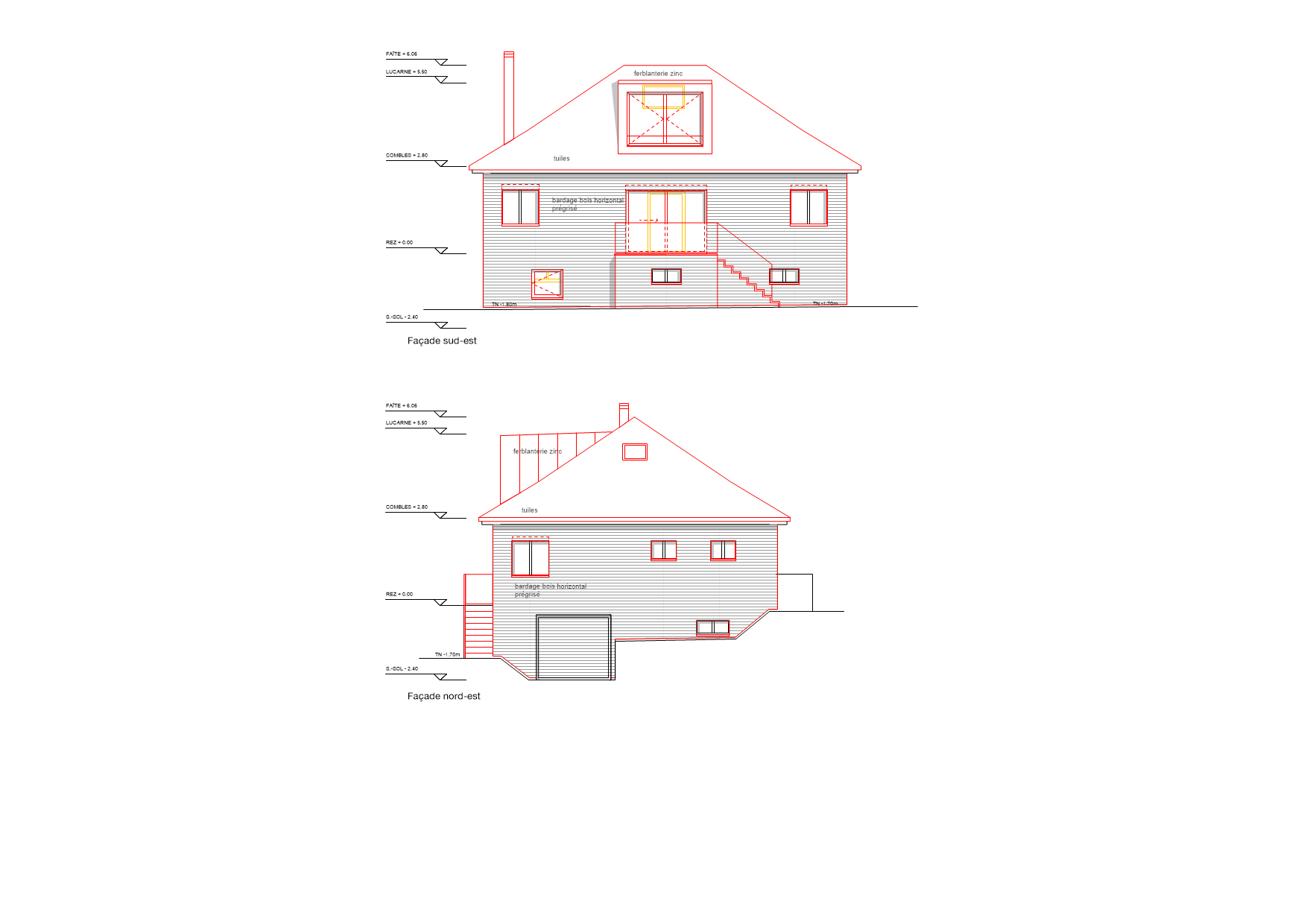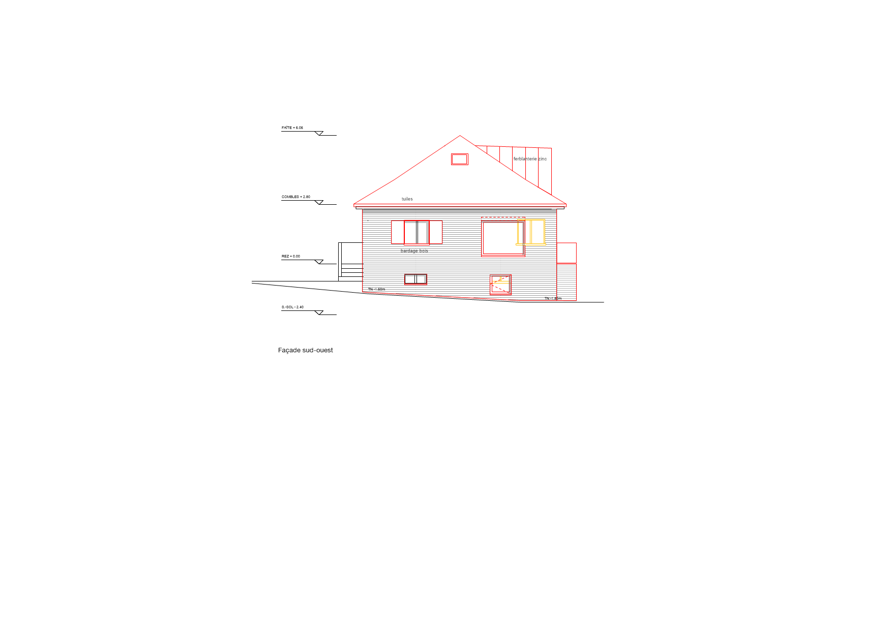 Les pertes thermiques sont réduites en isolant, la toiture, la façade et le plafond des caves. La nouvelle façade ventilée en bardage bois apporte un aspect plus contemporain à la maison.