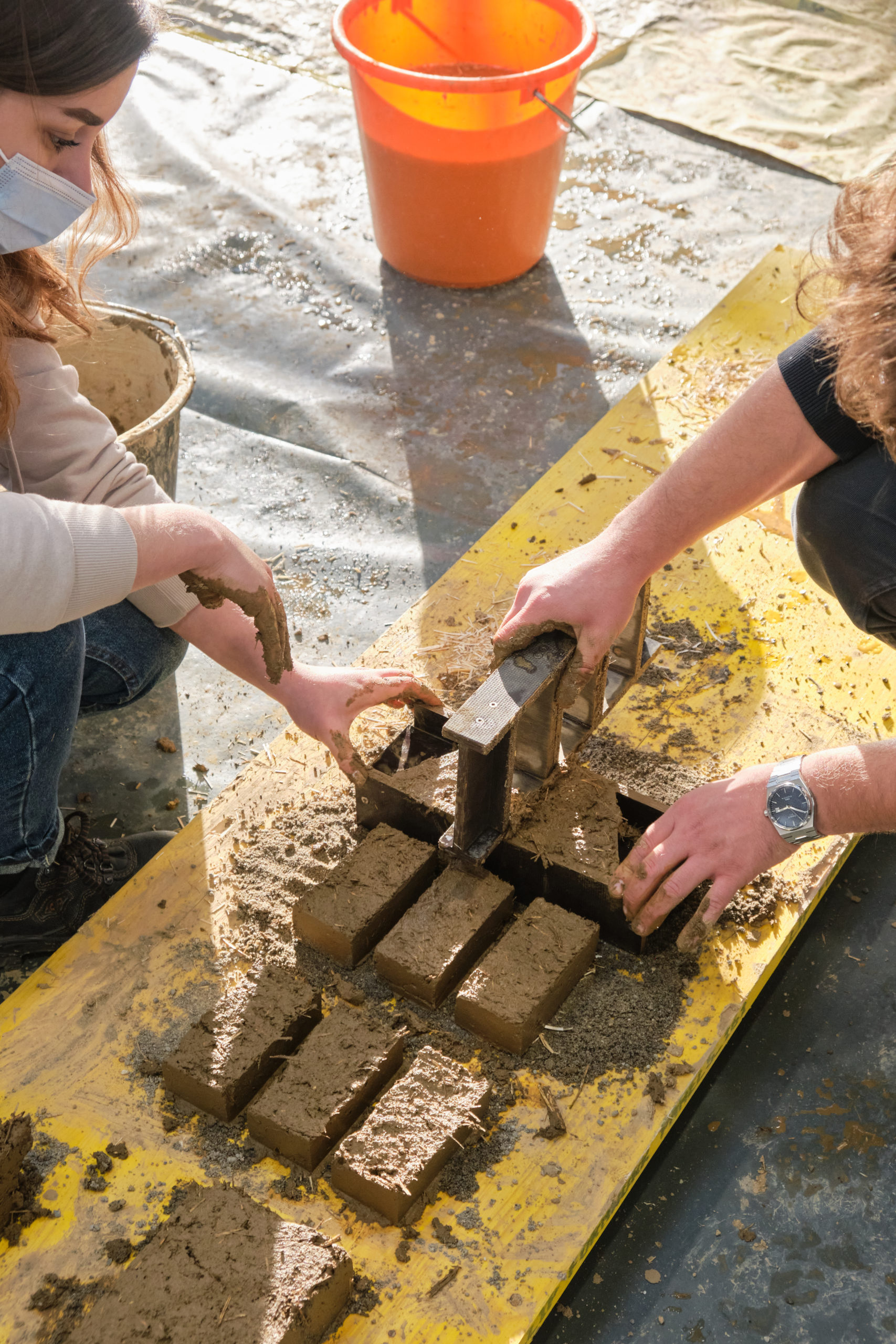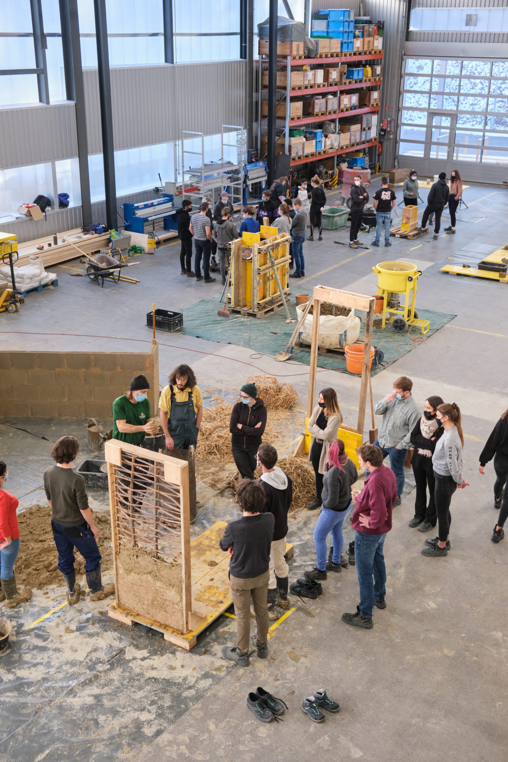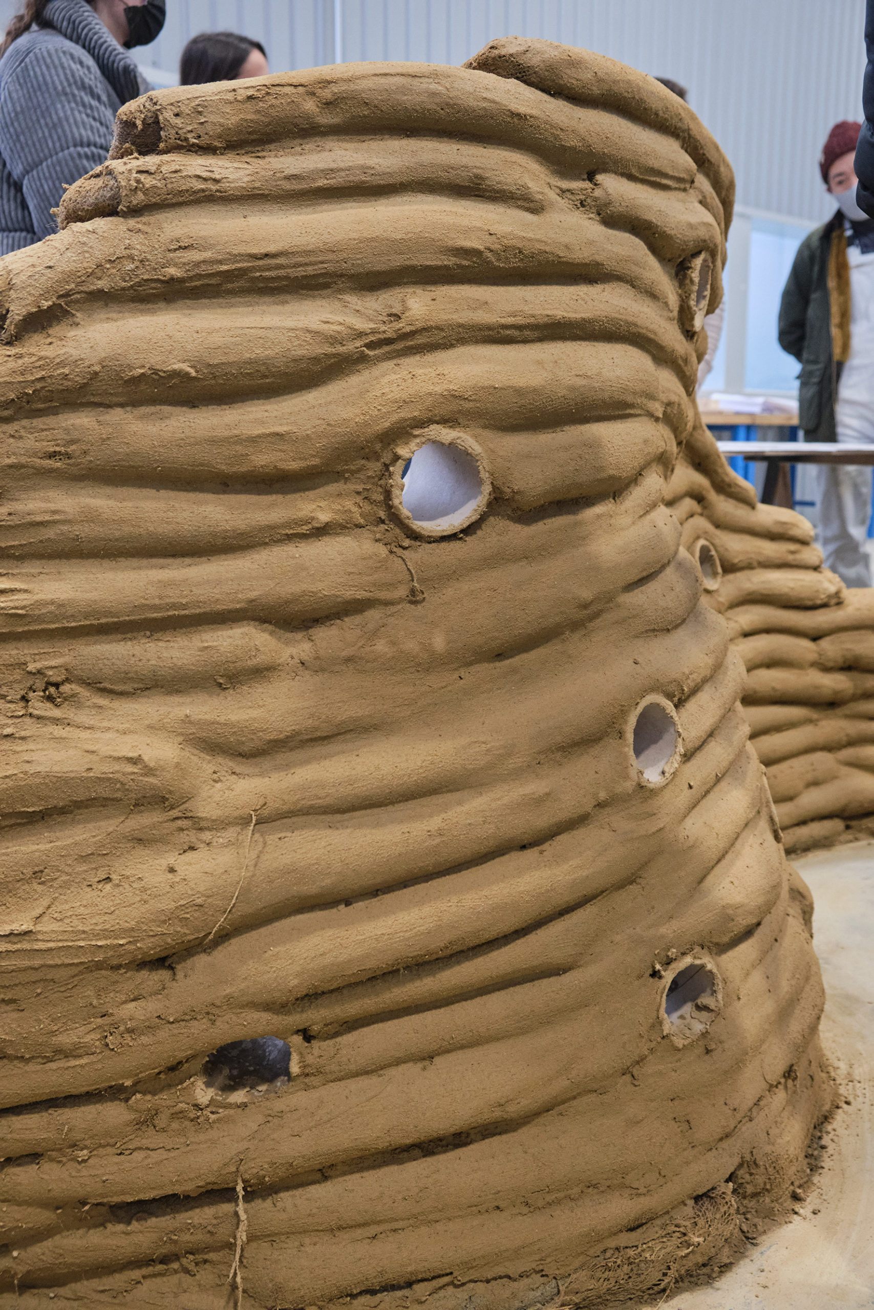 Par groupe, les étudiants ont réalisé une construction à l’échelle 1:1, illustrant leur ressenti avec la matière et une idée forte. Ils ont cherché les limites, les atouts et expérimentés les propriétés de la terre lors sa mise en œuvre. La démarche, parfois expérimentale, était riche d’enseignement.
